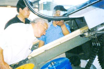 法國AMS電梯公司總裁阿蘭.雷諾先生,在大通電梯董事長(cháng)張祖鈞先生的陪同下,參觀(guān)公司生產(chǎn)